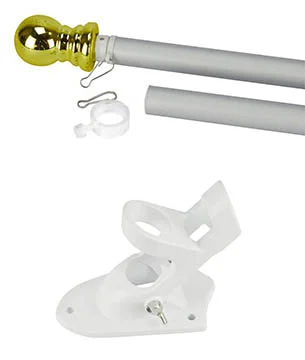 Keep in mind that flag etiquette states that the American flag should be on top. You can place your state flag under that, the flag for the city, and any other flags underneath. Following flag etiquette makes a good impression, and the flags look nice when they are displayed properly.